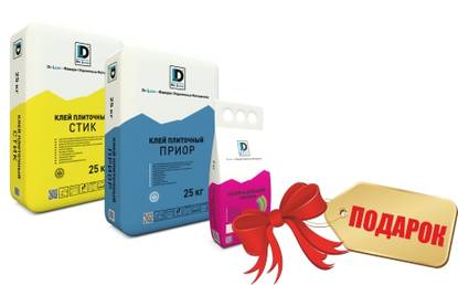 При единовременной покупке 10 мешков плиточных клеев De Luxe СТИК или ПРИОР вы получаете в подарок затирку De Luxe ПРЕМИУМ.