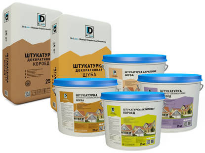 Такой вид штукатурки предназначен для создания фактурно-декоративного слоя «короед» и «шуба» на различных ровных поверхностях внутри и снаружи зданий, в том числе при устройстве систем утепления фасадов. Готовая поверхность декоративной штукатурки рекомендуется под последующее окрашивание. Выпускается исключительно в белом цвете.