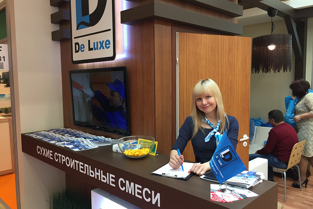 ТМ De Luxe продемонстрировала широкий спектр строительных материалов: монтажные и плиточные клеи, затирки, выравнивающие и декоративные штукатурки, шпатлевки, наливные полы, грунтовки, кладочные и универсальные пескоцементные смеси. На стенде «НА ВЕКА» презентовал материалы для фасадной теплоизоляционной системы: монтажные клеи De Luxe ТЕПЛОКЛЕЙ и ТЕПЛОСКРЕП. Новинкой на стенде стали серия готовых декоративных штукатурок De Luxe. В линейке 2 основных продукта – акриловая и акрило-силиконовая штукатурки, каждая представлена двумя фактурами – «КОРОЕД» и «ШУБА». Готовые штукатурки выпускаются в базовом белом цвете и могут быть колерованы под заказ на заводе.